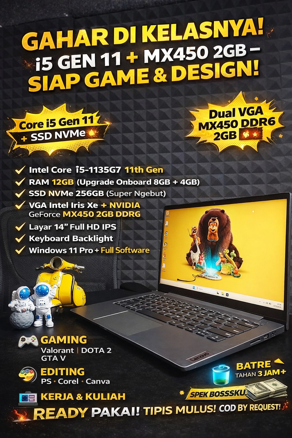Diskon 26%LAPTOP LENOVO 20VD – i5 GEN 11 + MX450 2GB