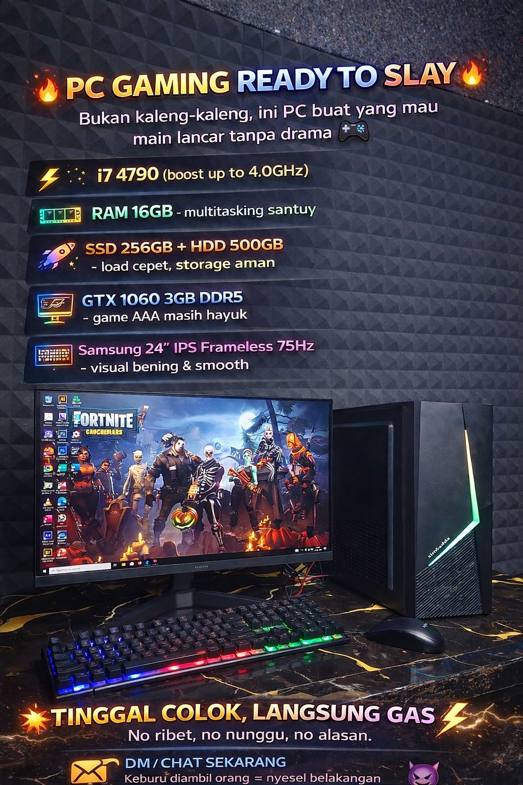 PC Gaming Fullset i7 4790 + GTX 1060 | Siap Pakai